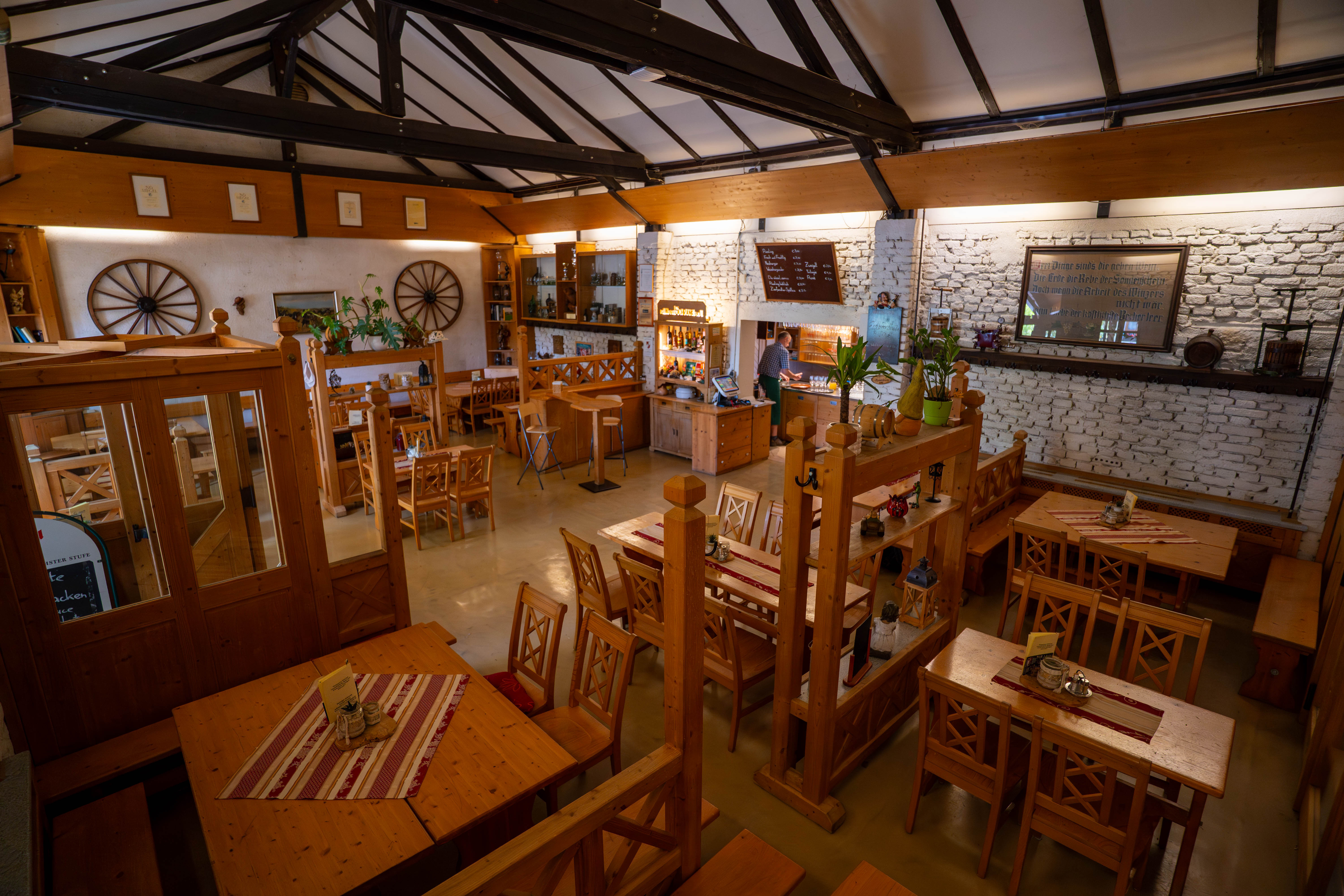 Der Hauptraum unseres Heurigen wurde liebevoll aus einem ehemaligen Stadl adaptiert und mit viel Gespür für Details und dem warmen Charme von Naturholz renoviert. Sowohl im Hauptraum als auch im Stüberl laden gemütliche Platzerln zum Verweilen, Genießen und Wohlfühlen ein – perfekt für gesellige Stunden in entspannter Atmosphäre. Für unsere kleinen Gäste gibt es eine liebevoll gestaltete Spielecke, in der sie sich nach Herzenslust austoben können.