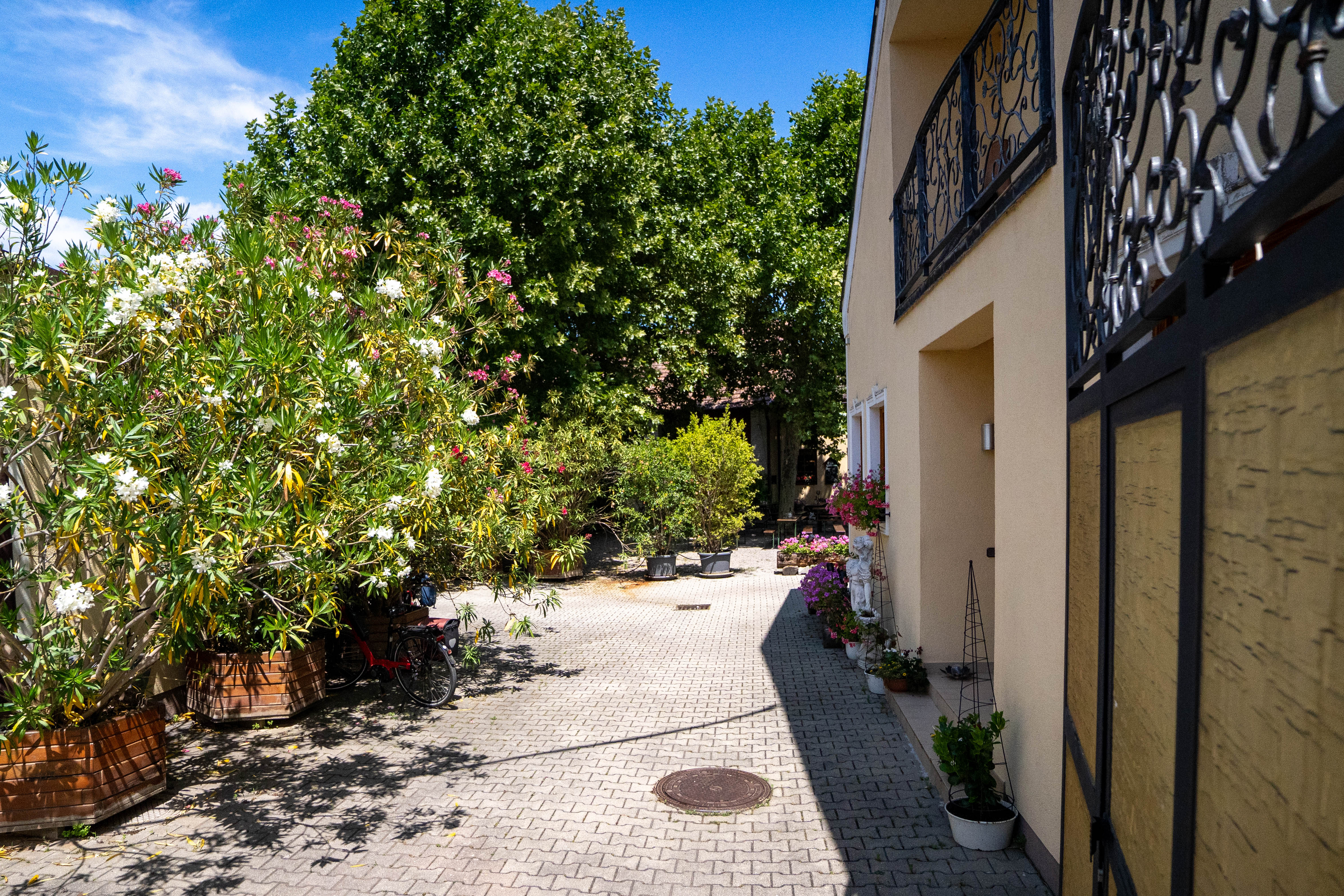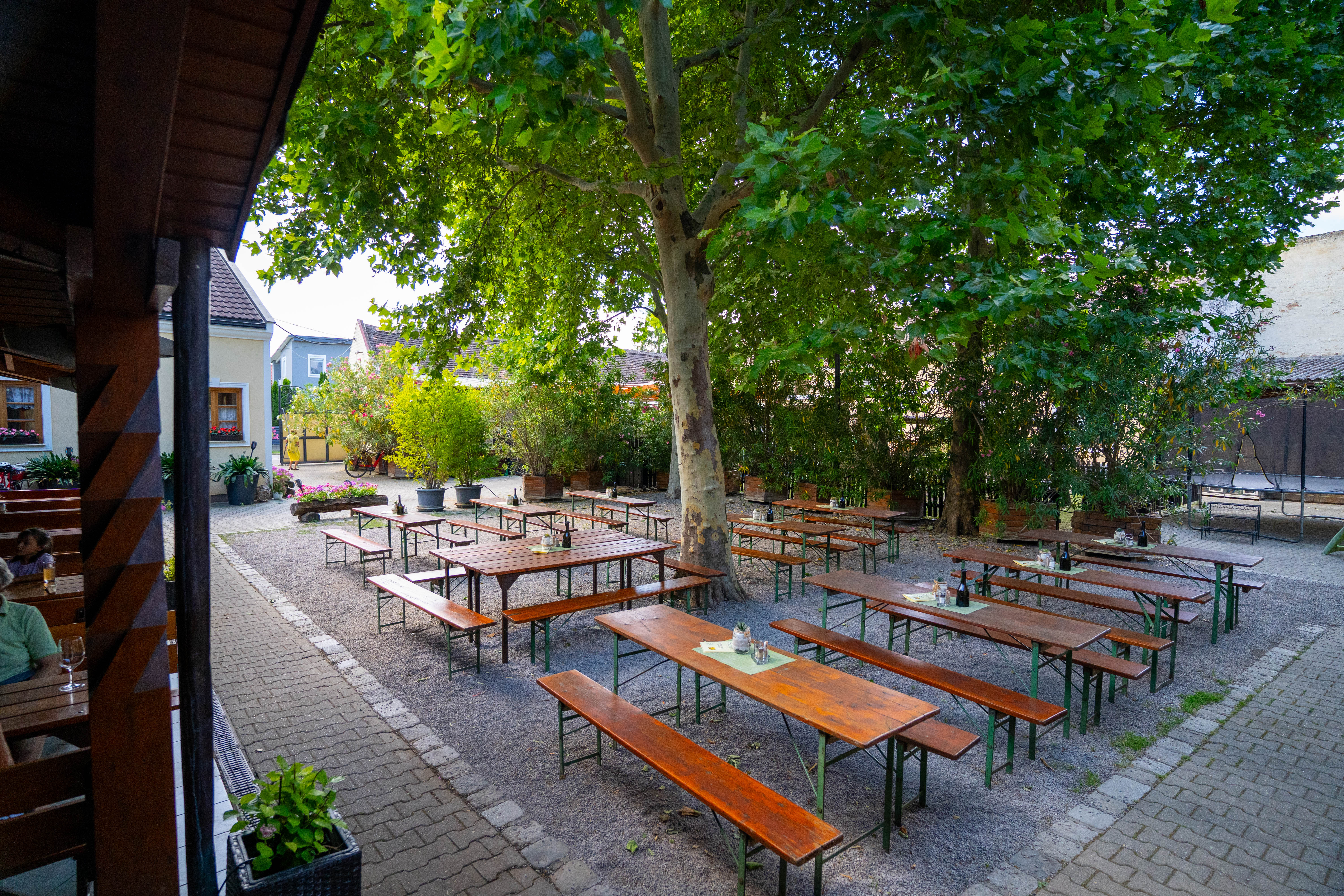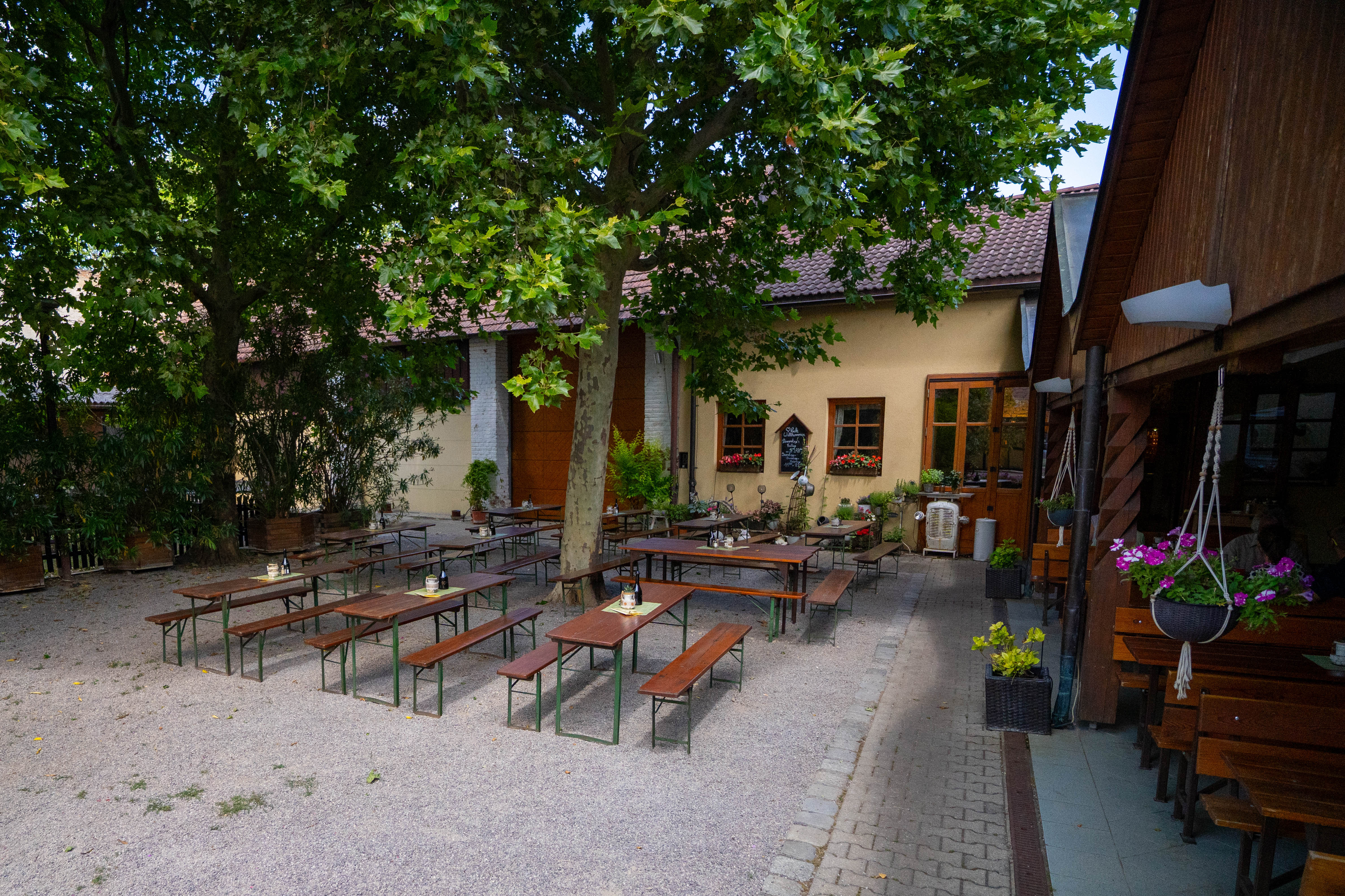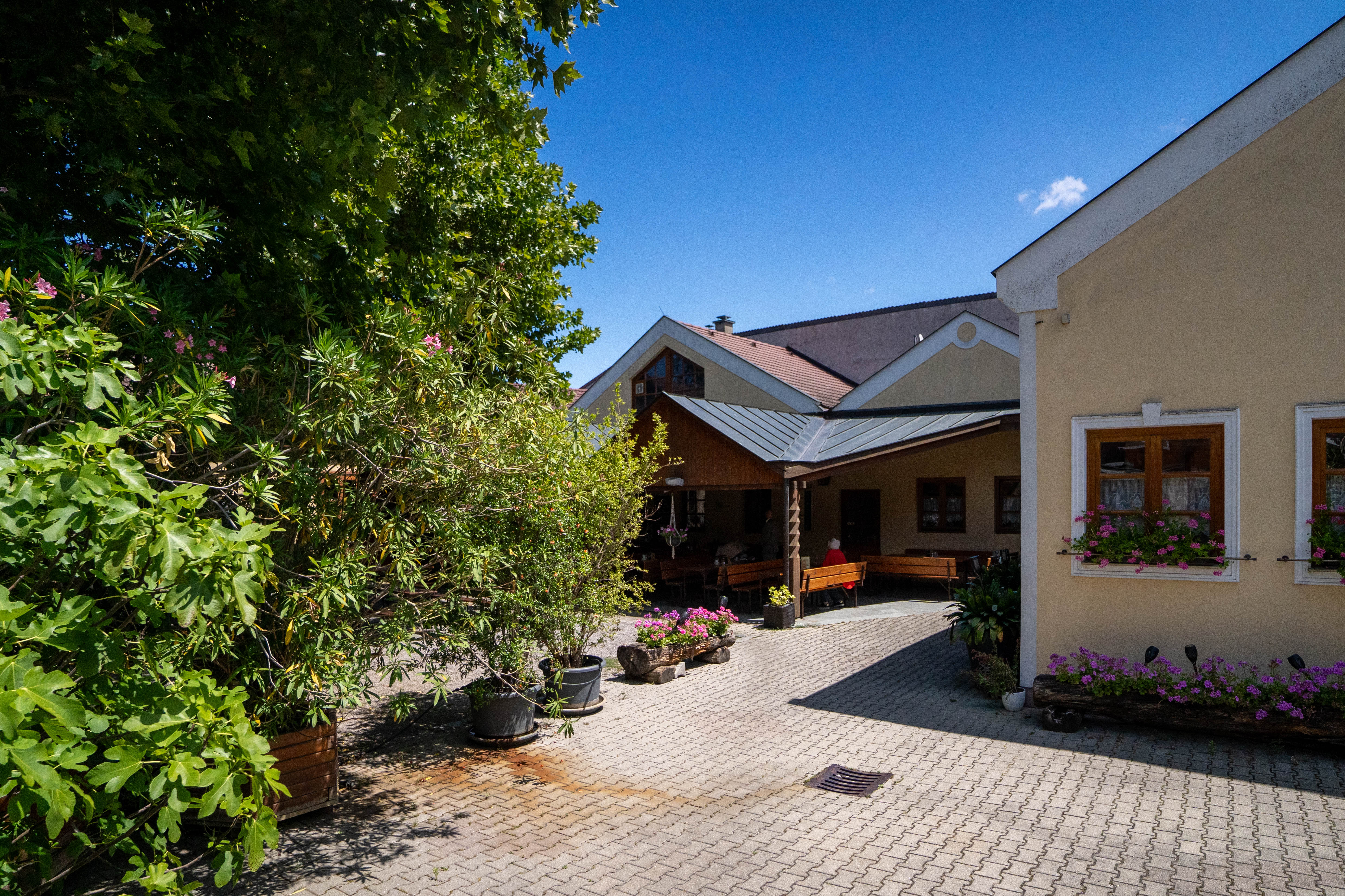 Unter den schattenspendenden Platanen und umgeben von duftendem Oleander finden sich lauschige Platzerln zum Wohlfühlen – ideal für warme Sommertage. Wer lieber die Sonne auf der Haut spüren möchte, ist an unseren sonnigen Tischen ebenso bestens aufgehoben.